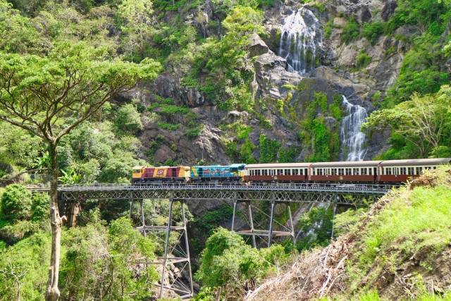 キュランダ高原鉄道は、ケアンズとキュランダ村を結ぶ歴史ある観光列車で、世界遺産の熱帯雨林を約37kmにわたって進む絶景ルートです。