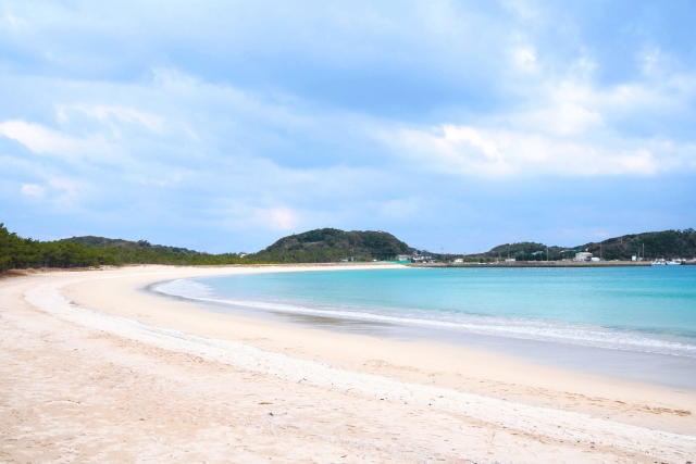 砂浜の主成分は細かく砕かれた貝殻で、一般的な砂浜よりも明るい白色をしているため、海とのコントラストが非常に美しく写真映えするのも特徴です。