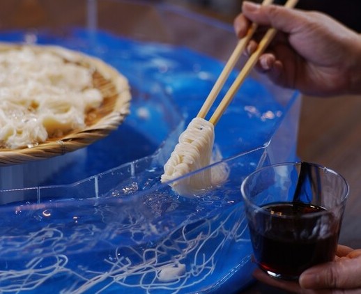 流水で流して捕まえる、伝統的な 流しそうめん体験ができるお店 です。