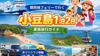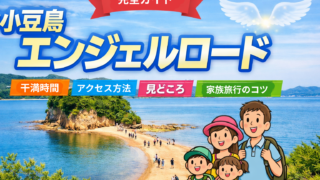 小豆島の人気観光地エンジェルロードを徹底解説。干潮時間・渡れるタイミング・アクセス・駐車場・見どころを詳しく紹介。子連れ家族旅行でも楽しめるポイントや観光のコツ、写真スポットまで完全ガイド。
